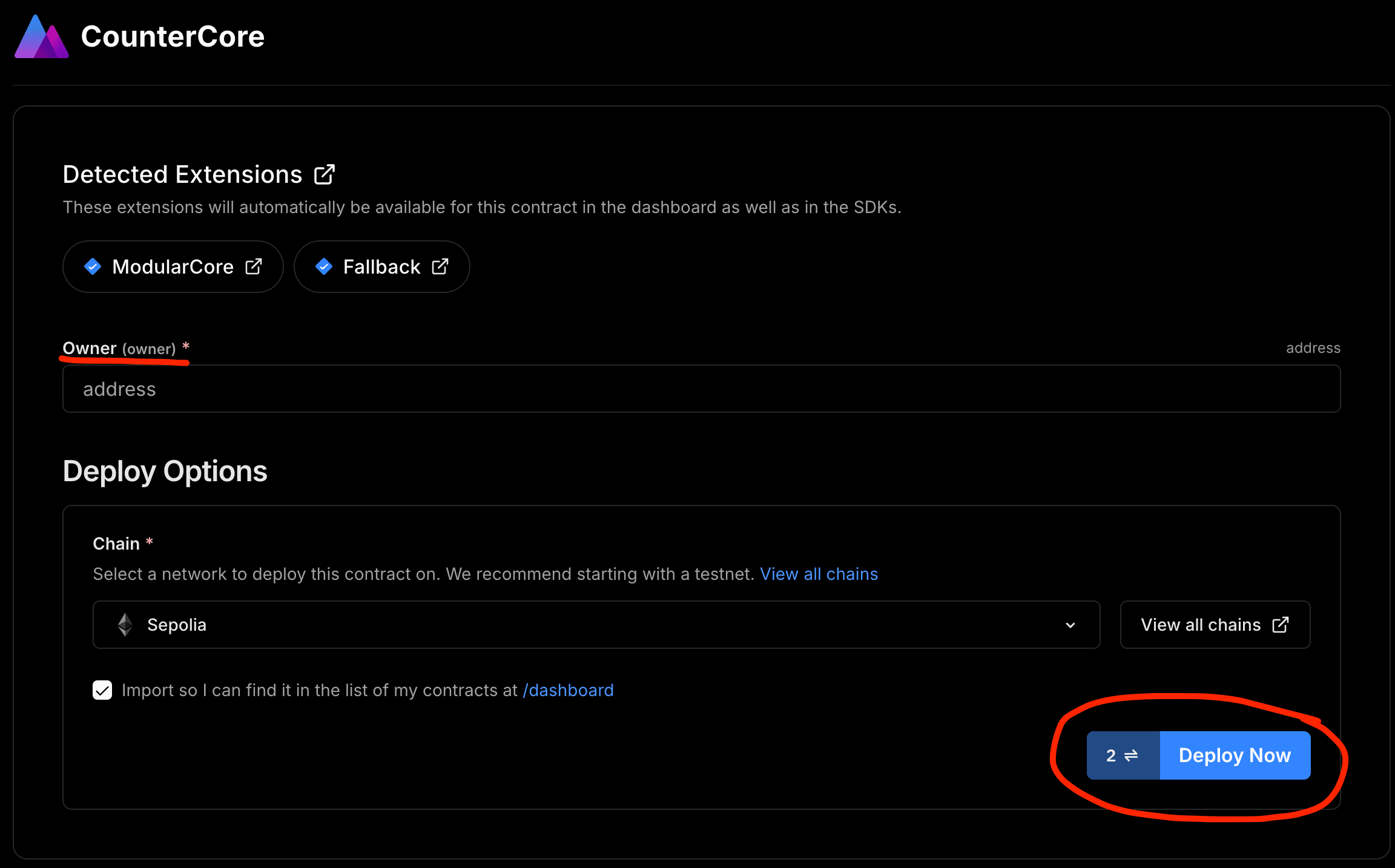 of the contract and click "Deploy Now".Then, choose the Sepolia chain and click "Deploy Now".